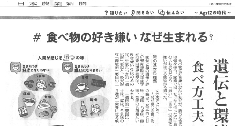 NEW 「日本農業新聞」掲載(1/19)歯学部 生理学講座 豊田博紀教授のコメントが掲載されました